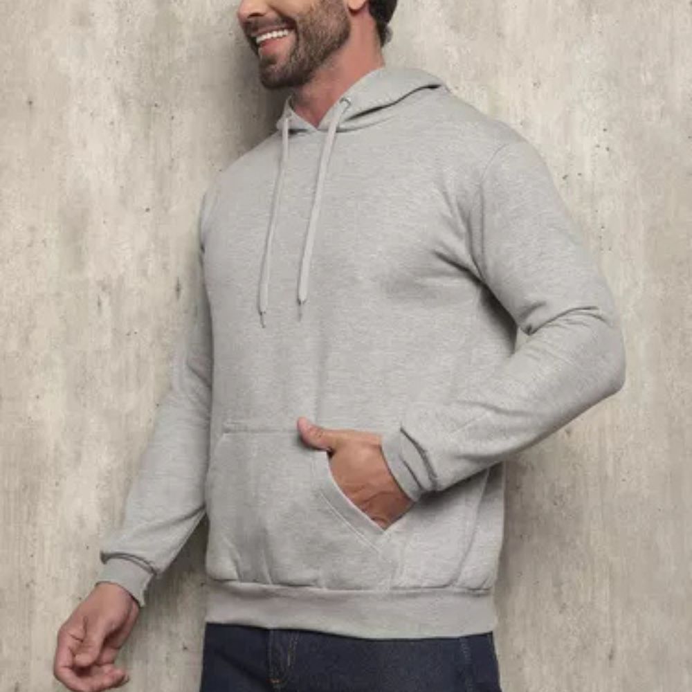 Com modelagem tradicional e capuz ajustável, o moletom conta com bolso estilo canguru, perfeito para aquecer as mãos ou carregar objetos com praticidade.