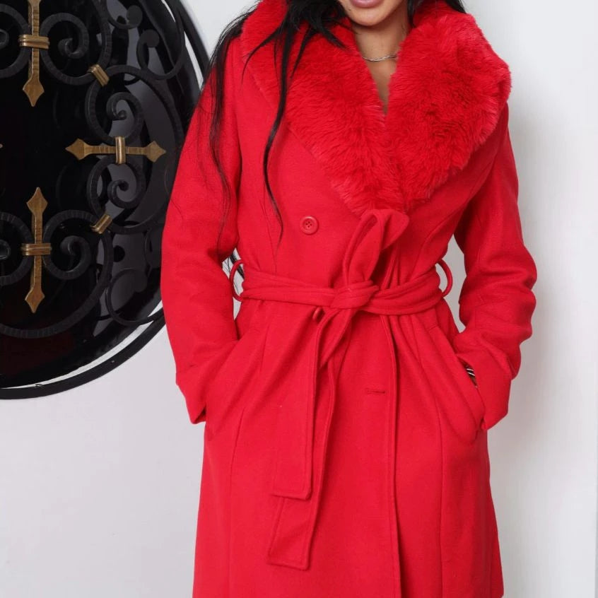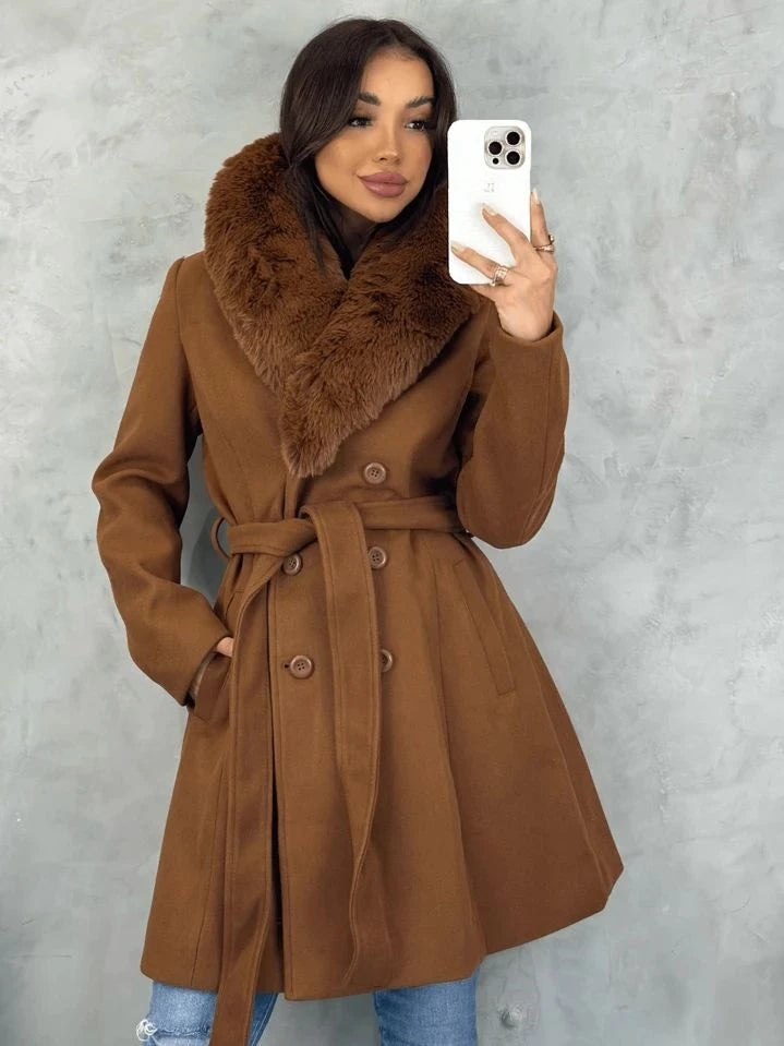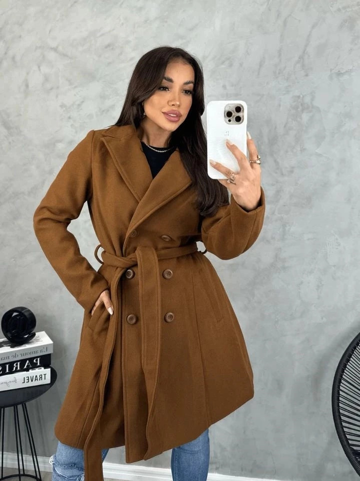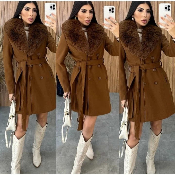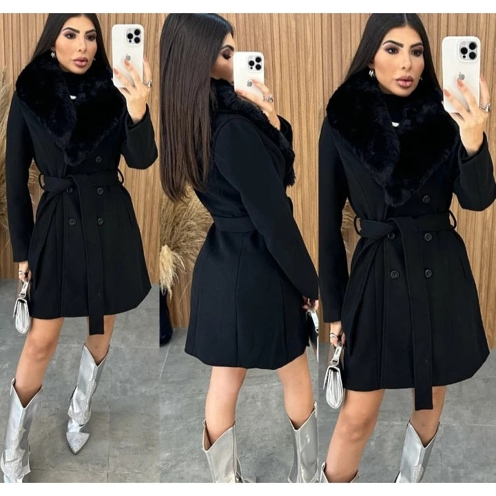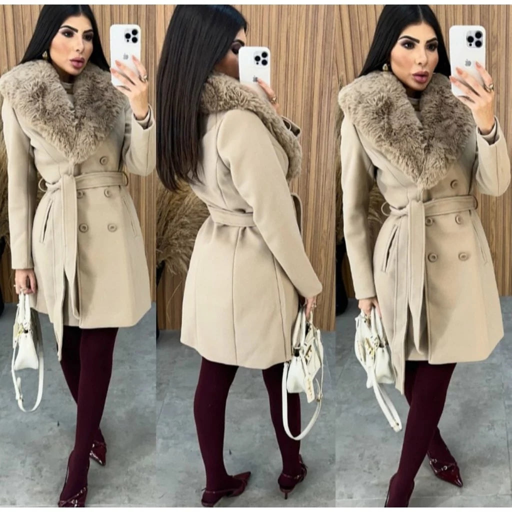 • 1x Sobretudo Feminino de Lã Batida com Faixa e Capuz Ajustável
