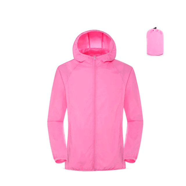 - Características: Proteção solar Anti UV, Anti-bolinhas, anti-encolhimento, respirável, de secagem rápida, à prova d' água, à prova de vento e com bolsos laterais;