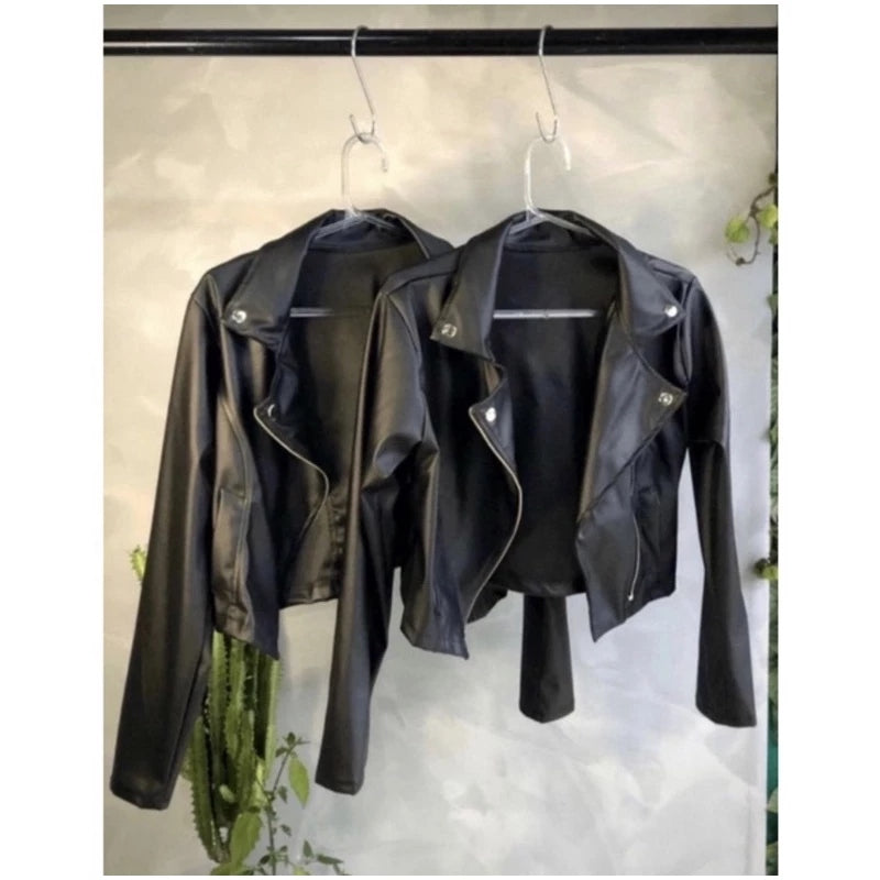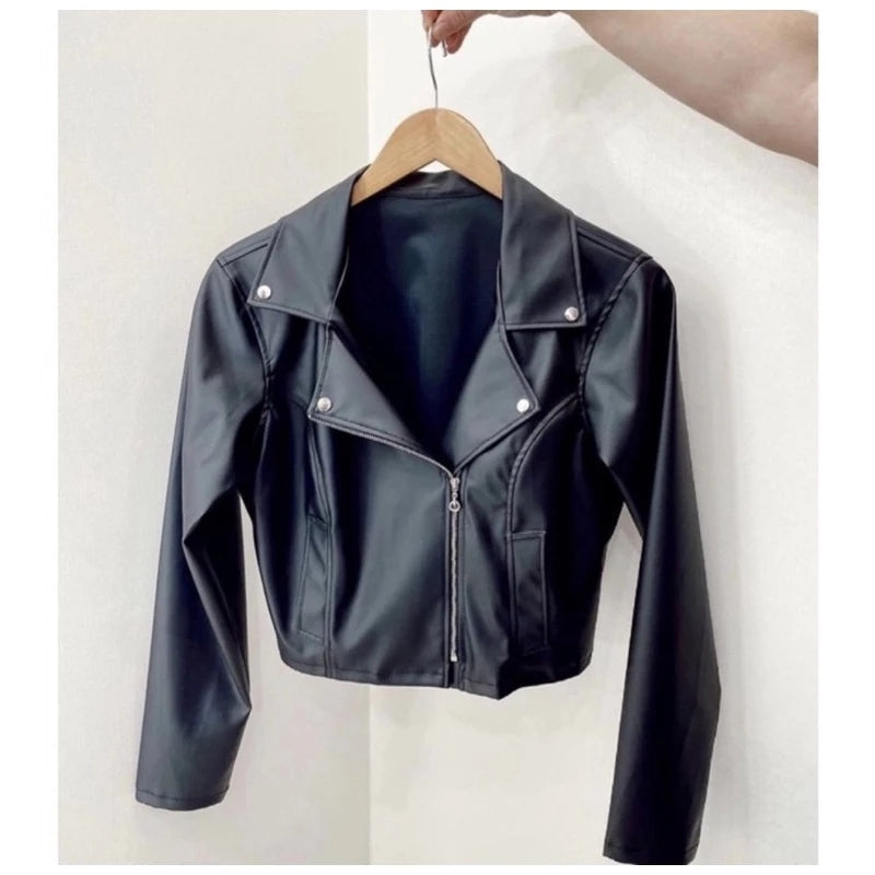 • 1x Jaqueta de Couro Feminina com Zíper para Inverno